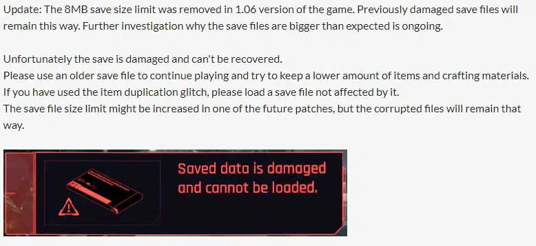 cyberpunk 2077 hotfix 106 note