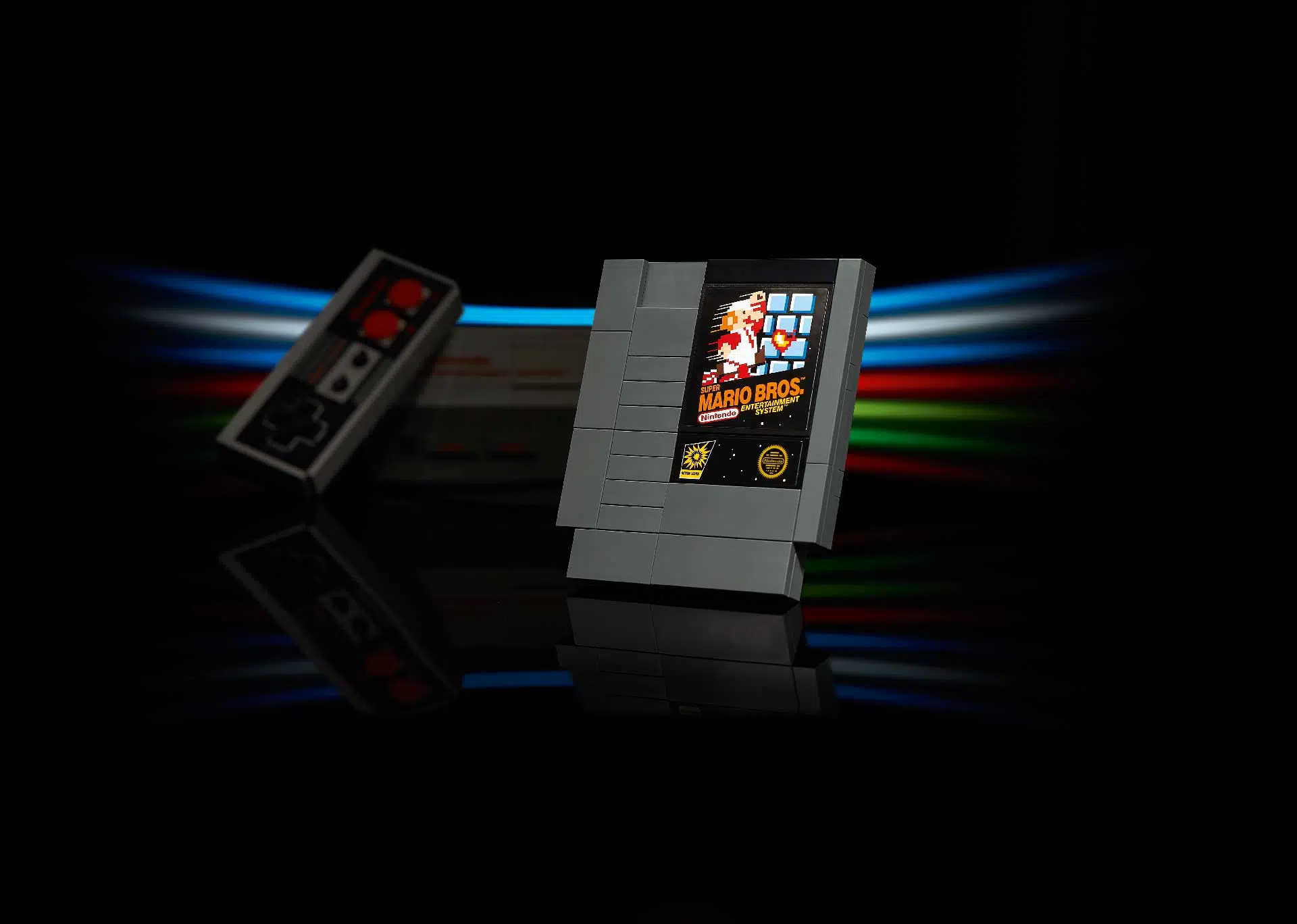 Das neue NES Bauset beinhaltet einen Controller samt Kabel und Stecker und für ein besonders nostalgisches Spielerlebnis sorgt der dazugehörige baubare Retro-Fernseher auf dessen Bildschirm eine kleine, flache 8-Bit Super Mario Figur zu sehen ist. Mit einem zusätzlichen Action-Baustein aus dem LEGO Super Mario Starterset kann die Figur gescannt werden, sodass diese analog zum legendären Super Mario Bros. Videospiel auf Feinde, Hindernisse und Power-Ups reagiert.