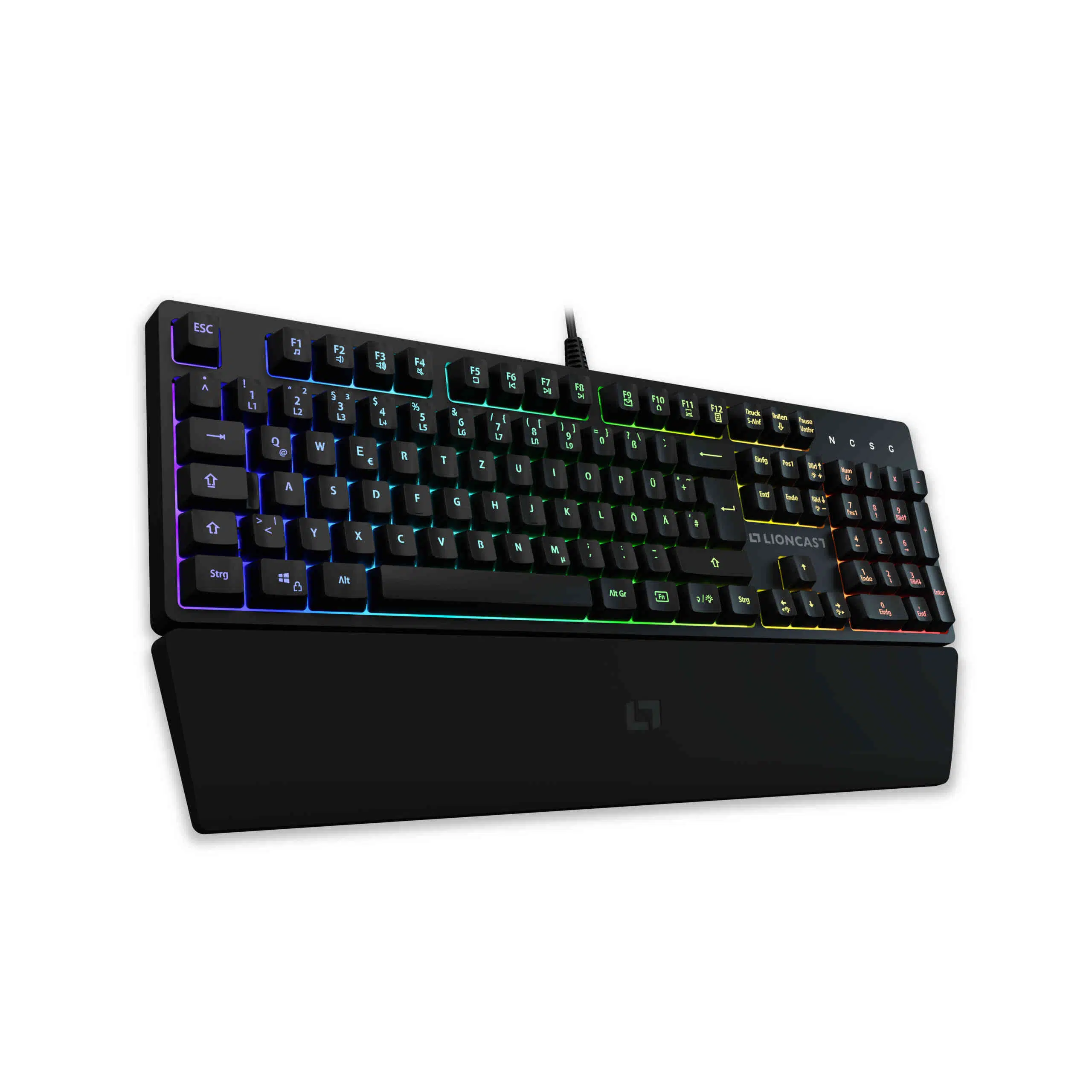 Mit der LK100 bringt Lioncast ein neues mechanisches Gaming-Keyboard auf den Markt. Dabei handelt es sich um eine RGB-Tastatur mit hochwertigen Membrane Switches, einer LED-Beleuchtung (mit 16,8 Millionen Farben), guten taktilen Eigenschaften und einer ergonomischen Handballenauflage.